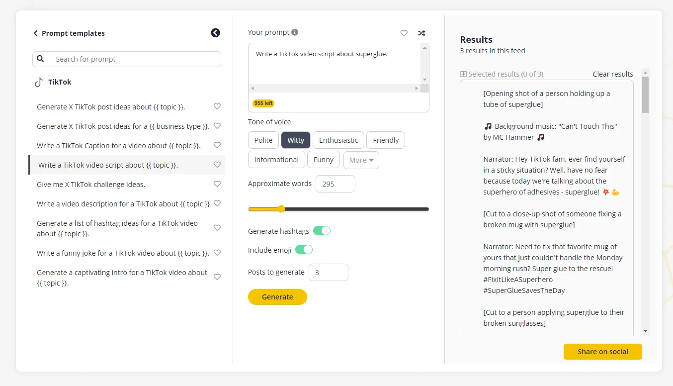 The social media post generator itself is free to use without having to be on a paid subscription.