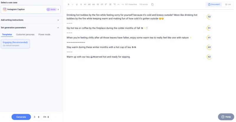 That means you can scale your social media content production with on-brand captions that adhere to your brand’s guidelines.