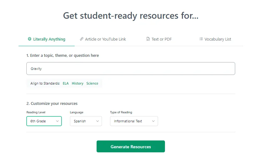 This allows you to create different versions of the same content (e.g., any text, PDF, Article URL, or YouTube video), ensuring that each version is tailored to varying student ability levels, making it easier to provide personalized learning experiences.