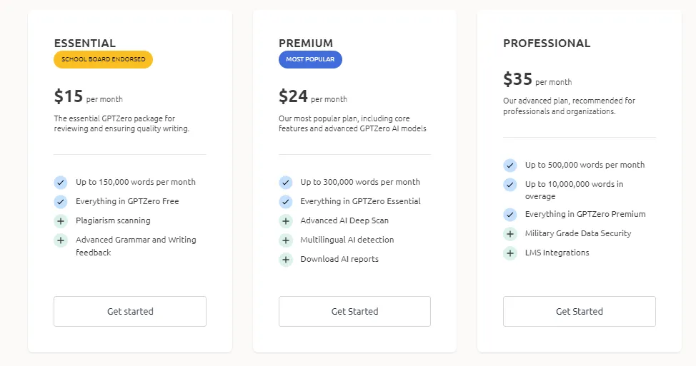 GPTZero also has a free plan with limited access to its capabilities. For example, you can use the AI detector for up to 10,000 per month.