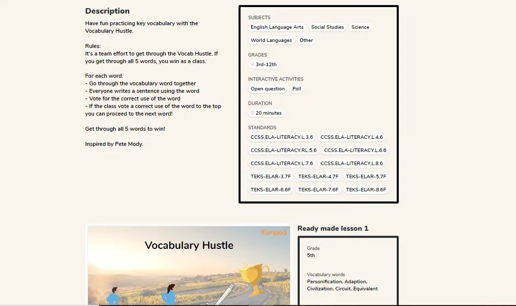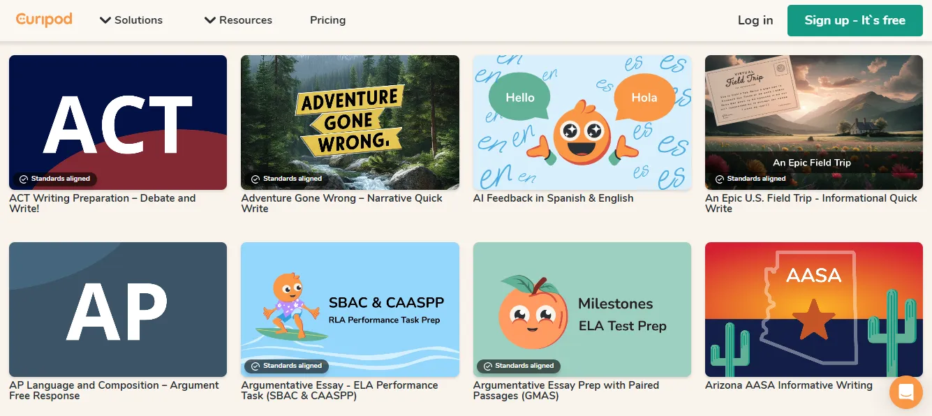 - Rich library of customizable lessons from various areas and subjects, ranging from writing to science, maths, and beyond.