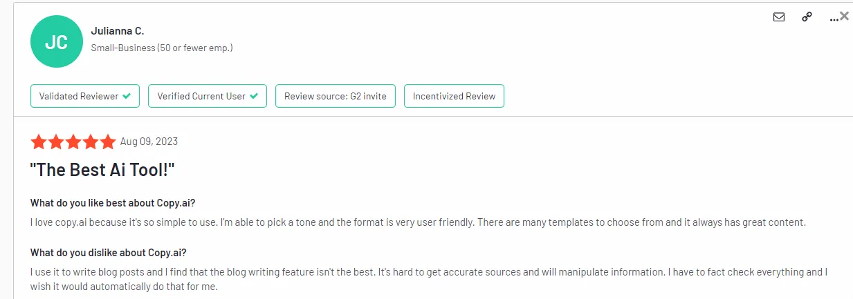The content Copy.ai generates could be better in terms of factual accuracy.
