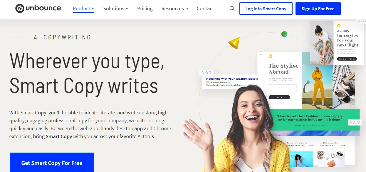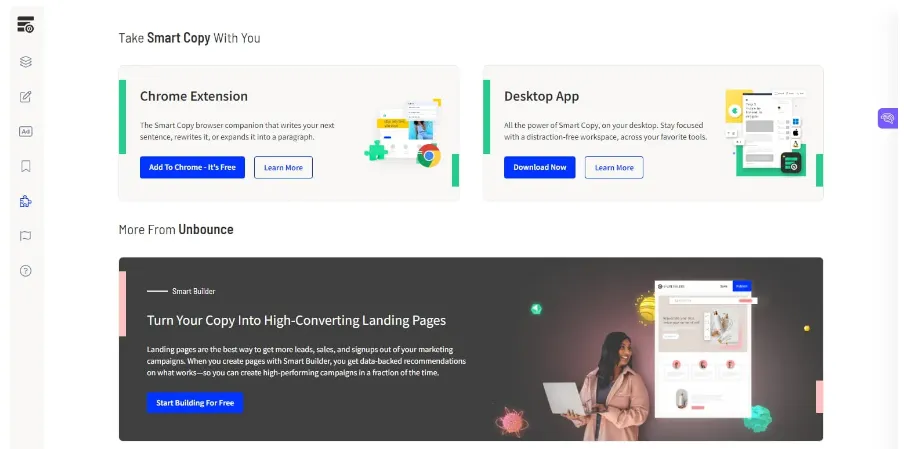 2. Smart Copy by Unbounce – Optimized for generating ad copy and landing page content.