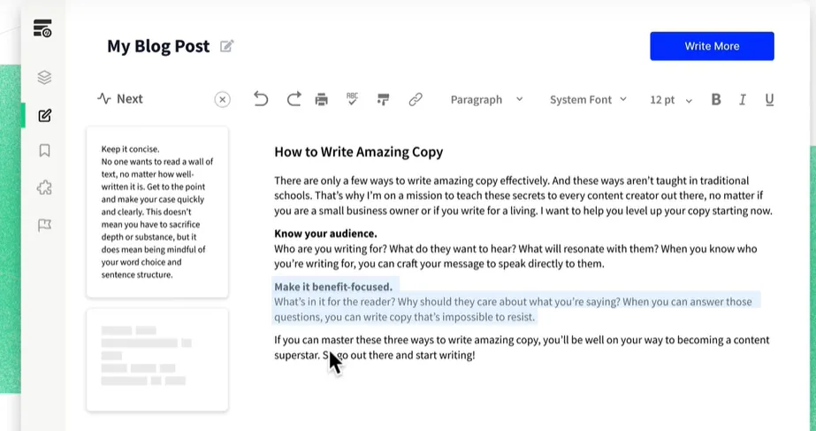 ❌ Limited long-form content capabilities, as it’s more optimized for shorter copy.