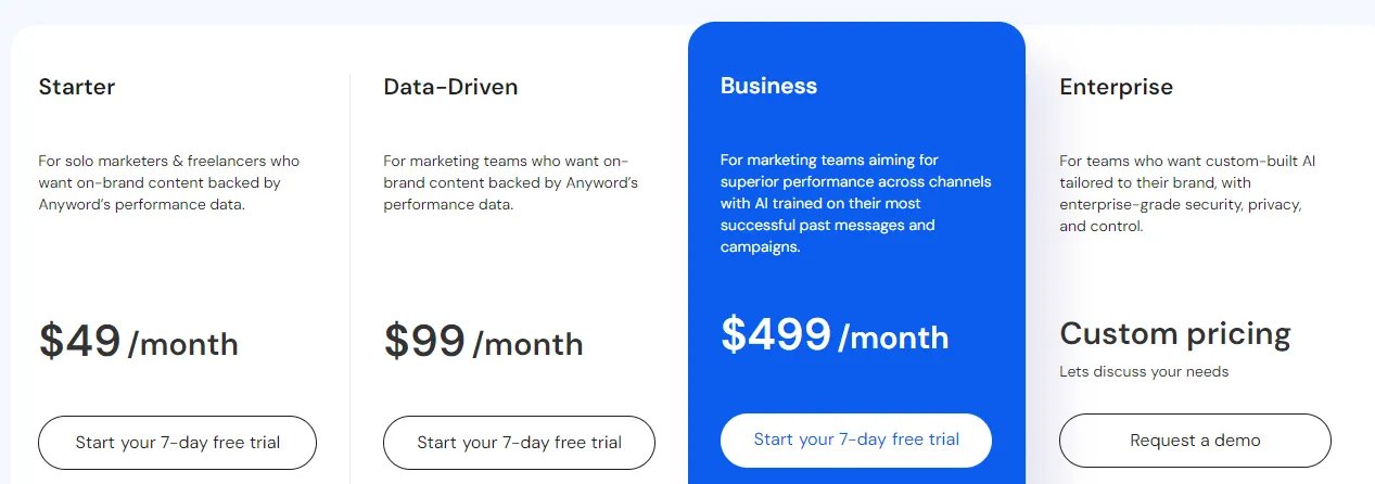 Anyword has 4 pricing plans: