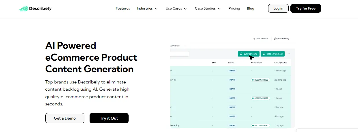 7. Describely – Specializes in creating e-commerce content.