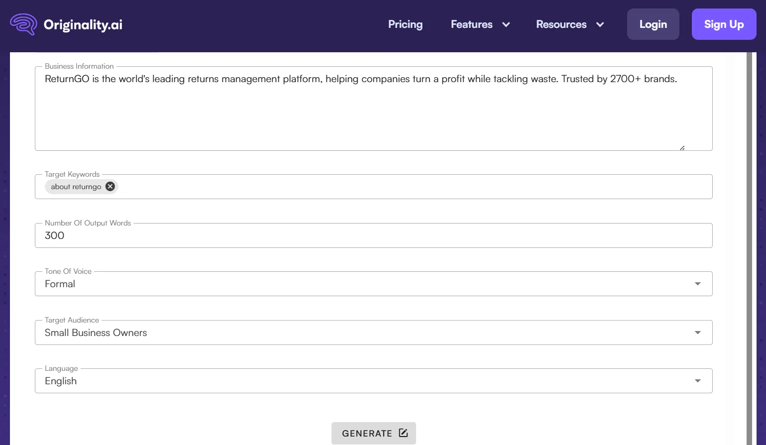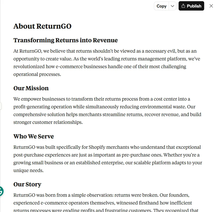 The tool did a good job of producing a long-form About Us page that took into consideration our story and target audience.