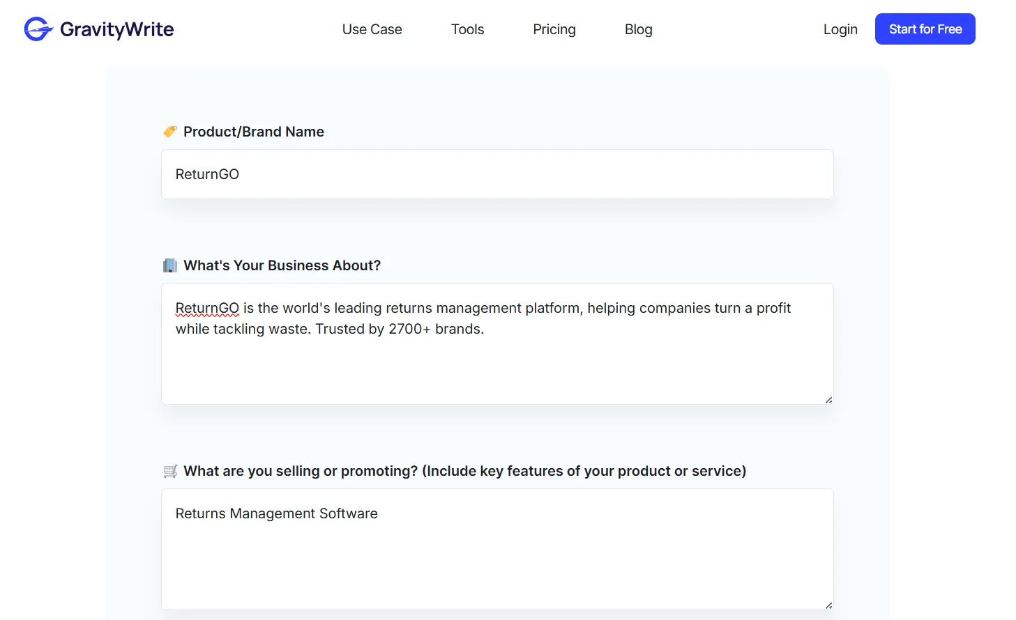 On the other hand, if you’re looking for a tool that asks for more information about your brand, you can give ChatGPT or GravityWrite a chance.