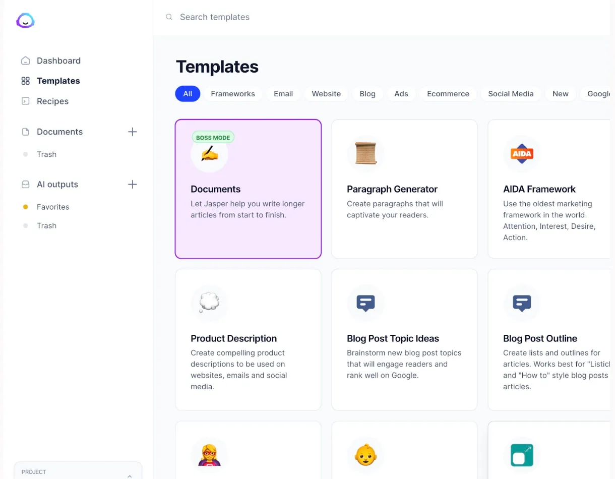 #3: Jasper AI: Automate content generation with pre-built templates.