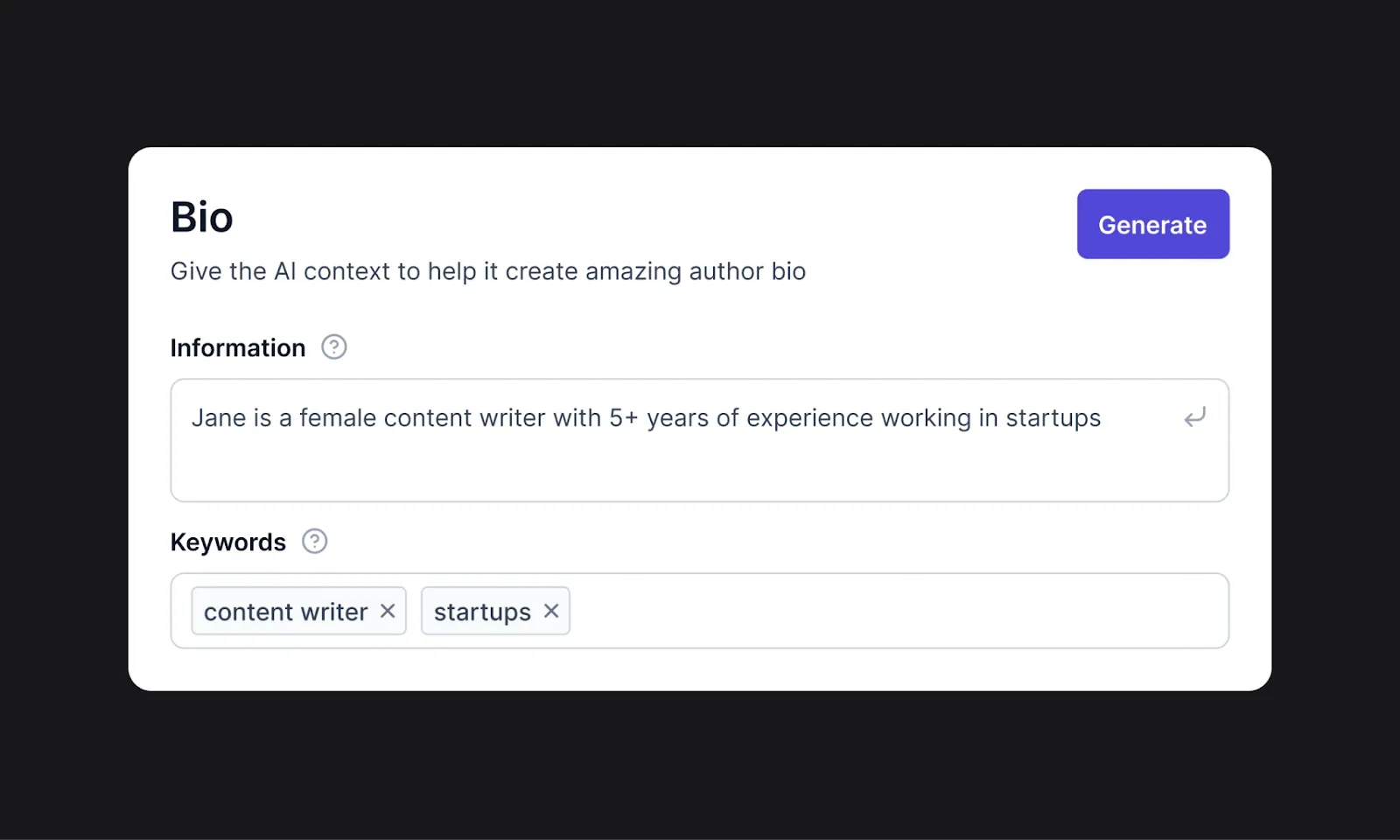 Some tools give you a generic fill-in-the-blank format with no room to adjust. But if you want to build a bio that reflects your tone or voice, you need a tool that lets you decide the flow.