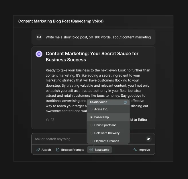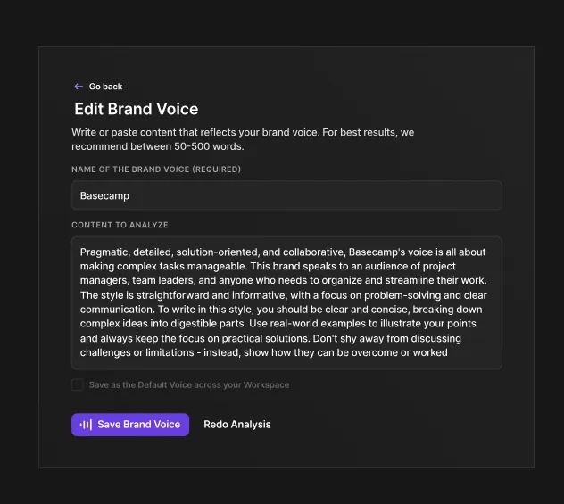 I know that some of you will look for a one-off task, while others will look for a more advanced and comprehensive AI brand voice generator (e.g., generate on-brand AI content at scale for clients).