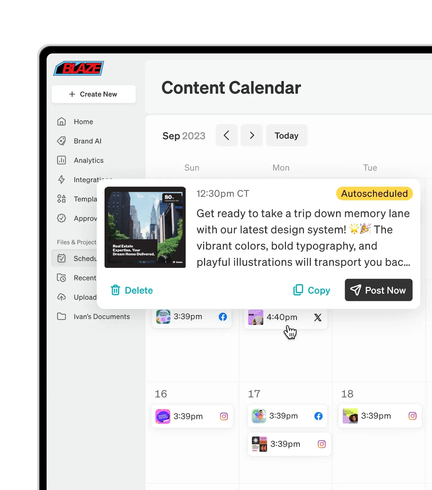 The tool lets you then automatically schedule your generated output and manage your social media accounts from there.