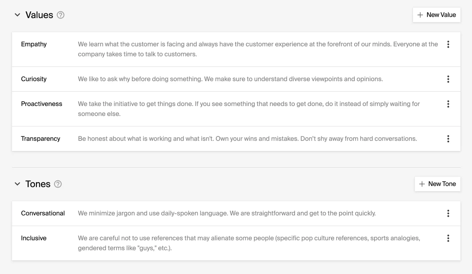 - Tonality, such as conversational and inclusive, where you can add bonus context.