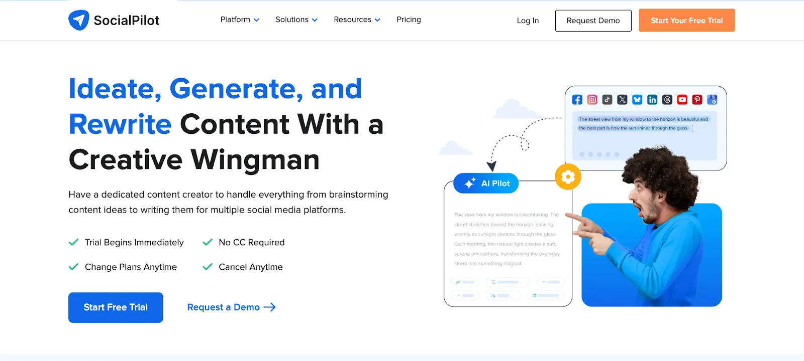 If you want more than just content ideas and prefer a tool that lets you generate multiple post versions, group content into categories, and handle publishing all in one place, this is a strong option. It also includes its AI assistant, Copilot, which gives suggestions on what to write, when to post, and how to format your content.