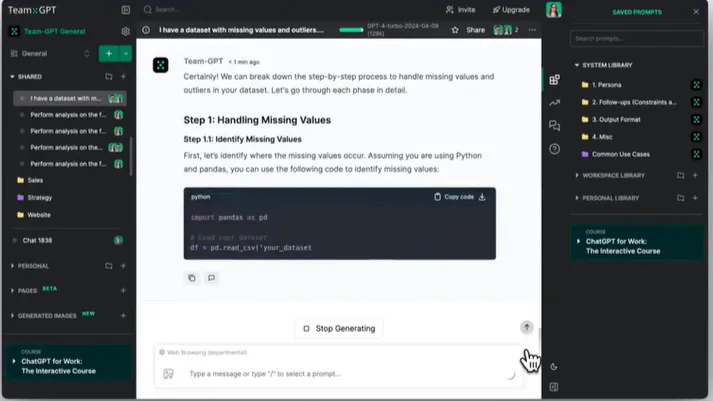 Pro tip: You can use the Fork Chat feature in Team-GPT to test various scenarios without losing or messing up the original chat.