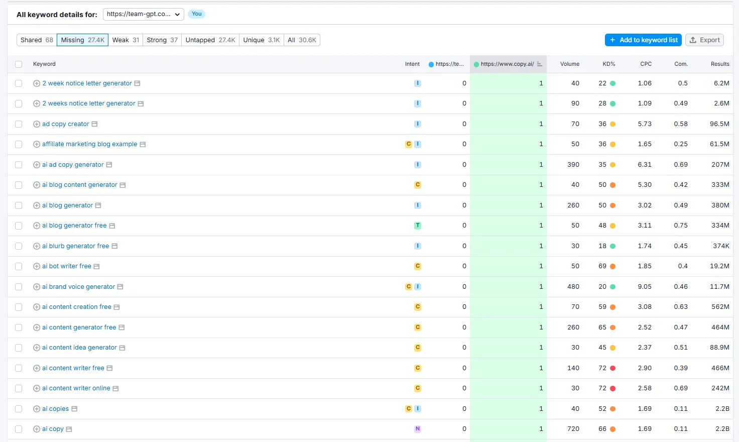 For example, here’s me comparing Team-GPT’s domain against Copy AI: