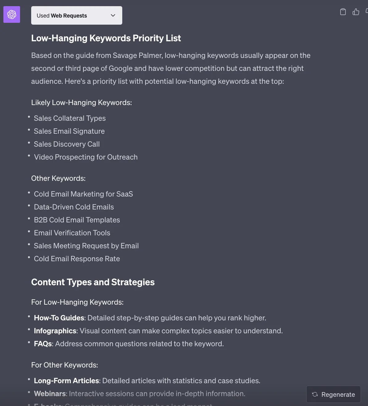 Here’s the content strategy it helped me with for ‘’keyword research’’: