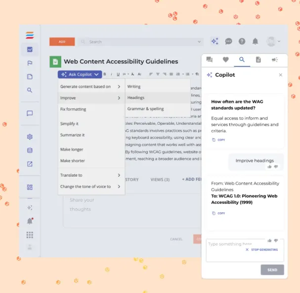 - A content generator (GenAI Content Copilot) that lets you improve your knowledge quality.