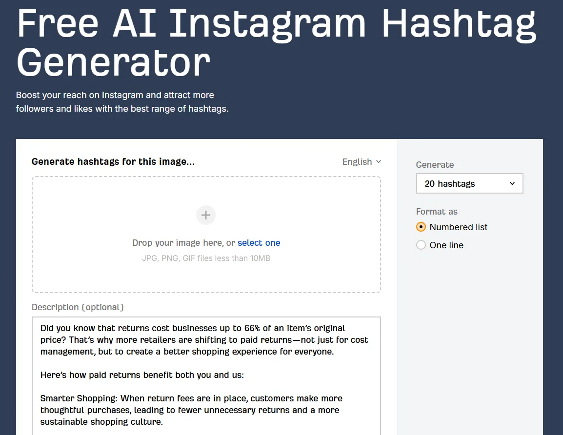 Best for: Generating data-driven Instagram hashtags from keywords.