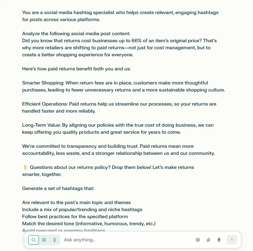 💡 By having better prompts and collaborating with your team, you can produce superior social media posts and hashtags for your clients or your brand in the long run.