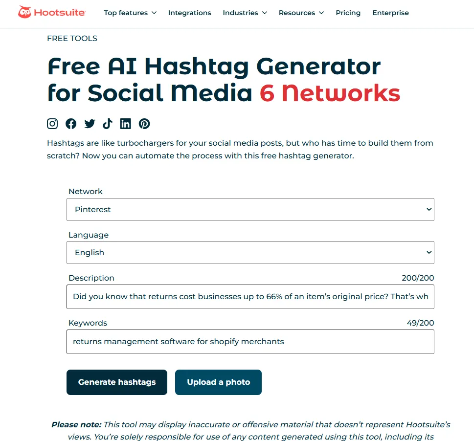 Hootsuite offers a hashtag generator that considers your social media post alongside: