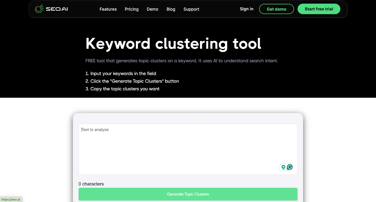 SEO AI is a powerful tool designed to help marketers and content creators generate targeted keyword clusters with ease. Unlike basic keyword tools, SEO AI focuses on understanding search intent (what users are looking for when they search) to create more meaningful and relevant clusters.