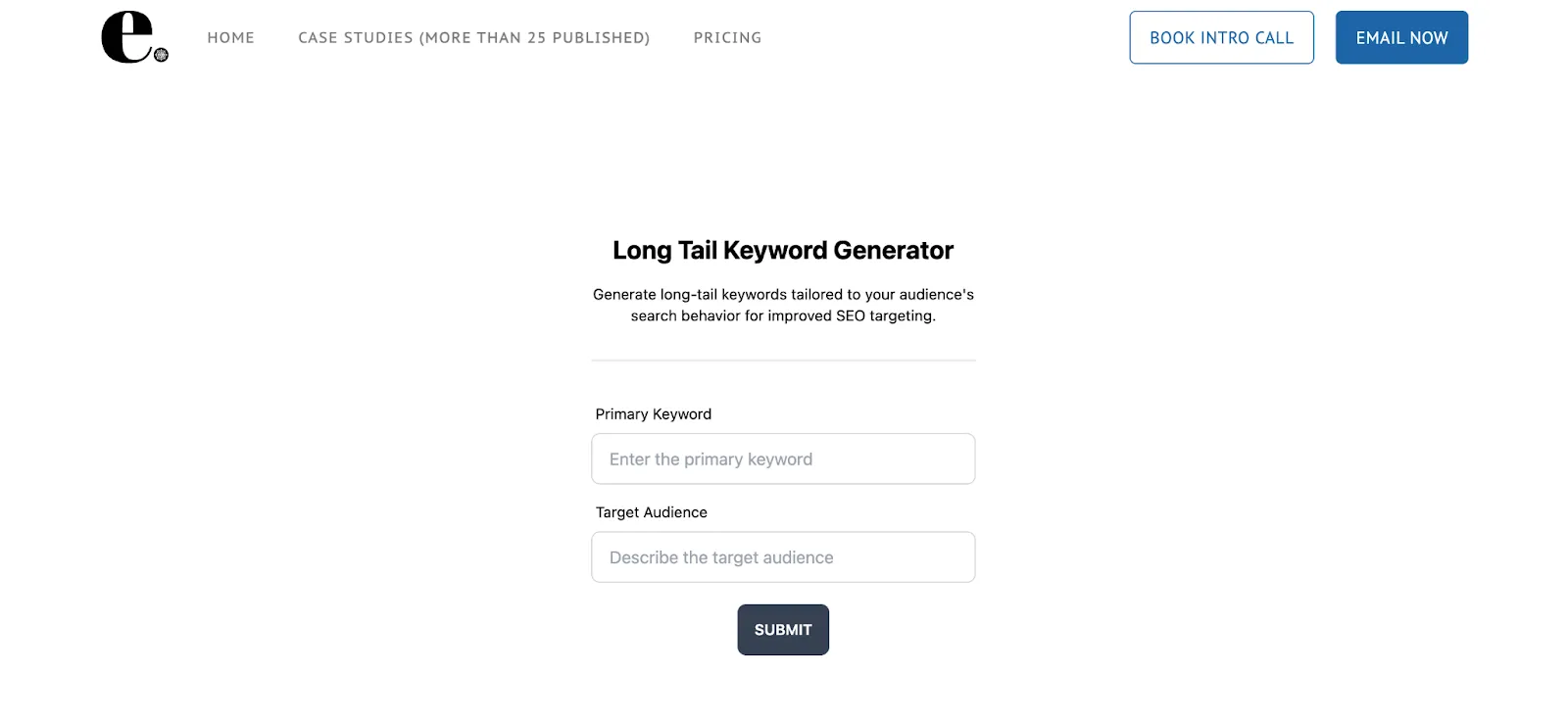 If you’re tired of generic keyword tools that generate the same “top keywords” everyone else is chasing, Embarque’s Long Tail Keyword Generator is an excellent alternative. It focuses only on long-tail keywords and specific phrases that are easier to rank for and better aligned with what real people actually search for.