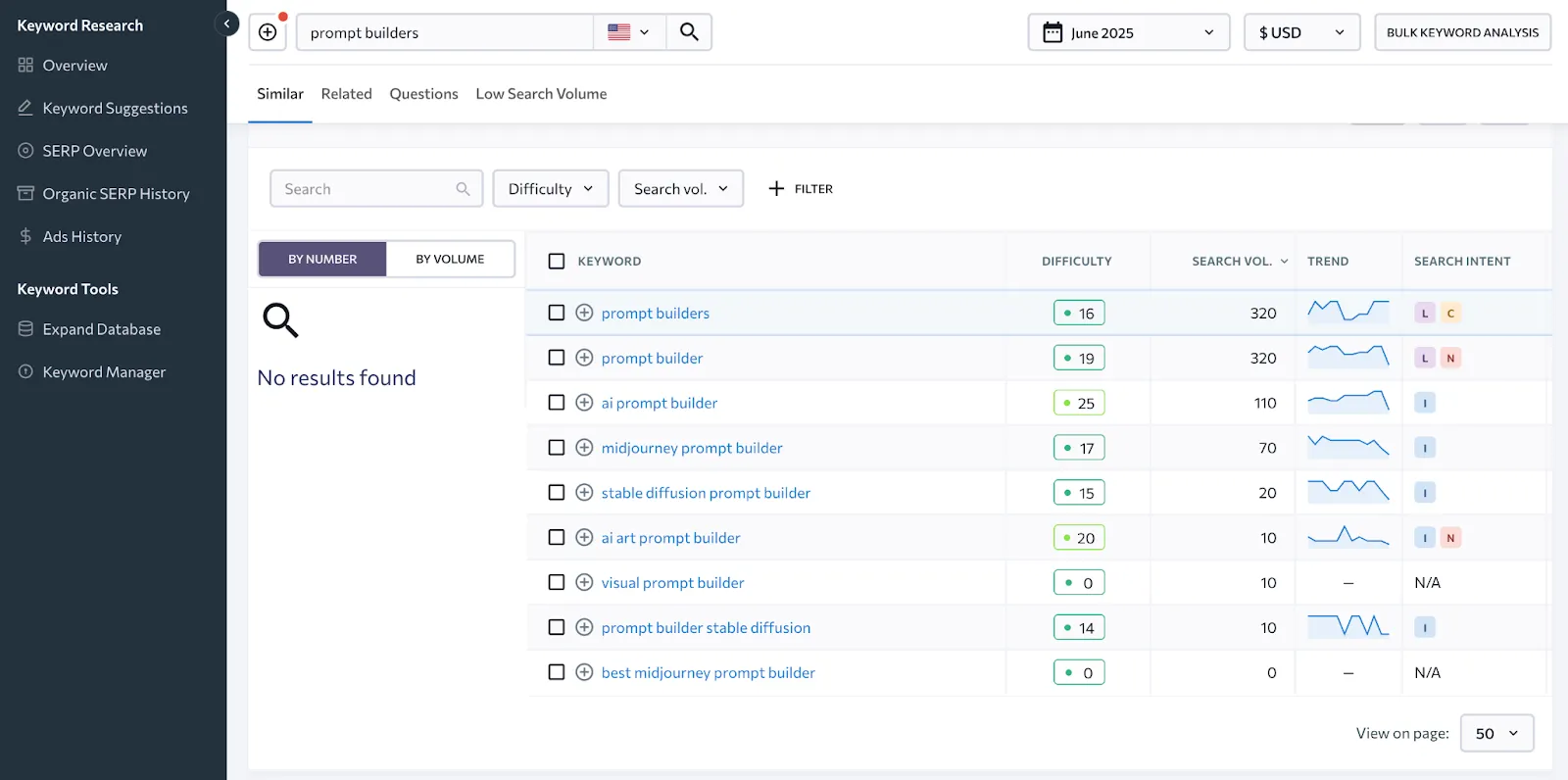 - Enter the Primary Keyword: I start with a simple phrase, like “prompt builders.”