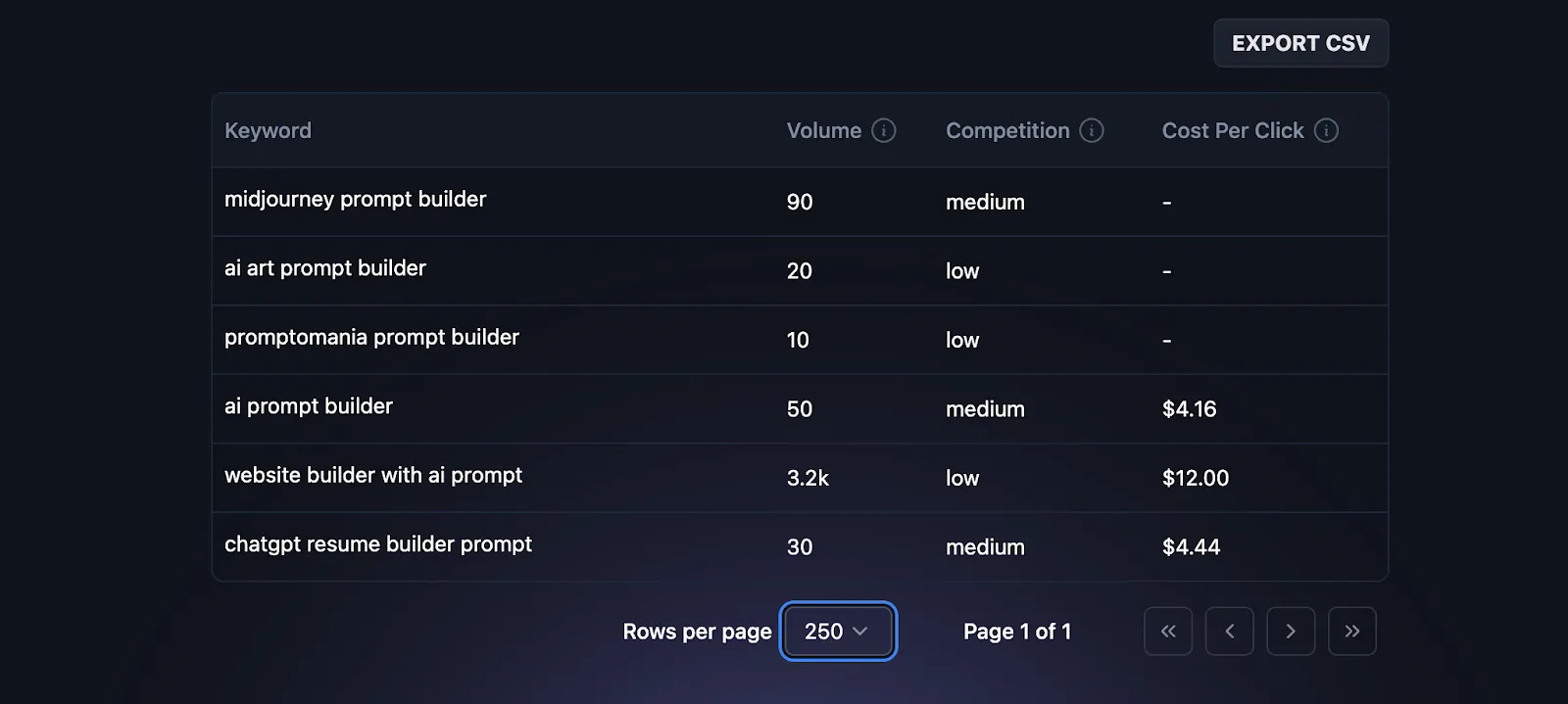 ✅ You get accurate search volume and CPC for each keyword, unlike tools that only give vague ranges.