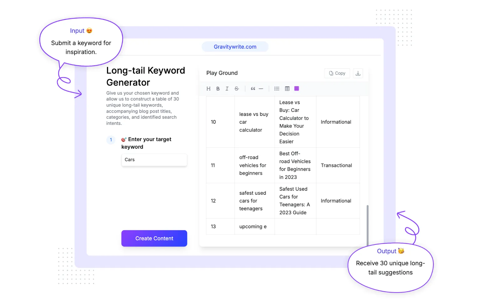 Here’s how I use GravityWrite’s long-tail keyword tool to shape my content: