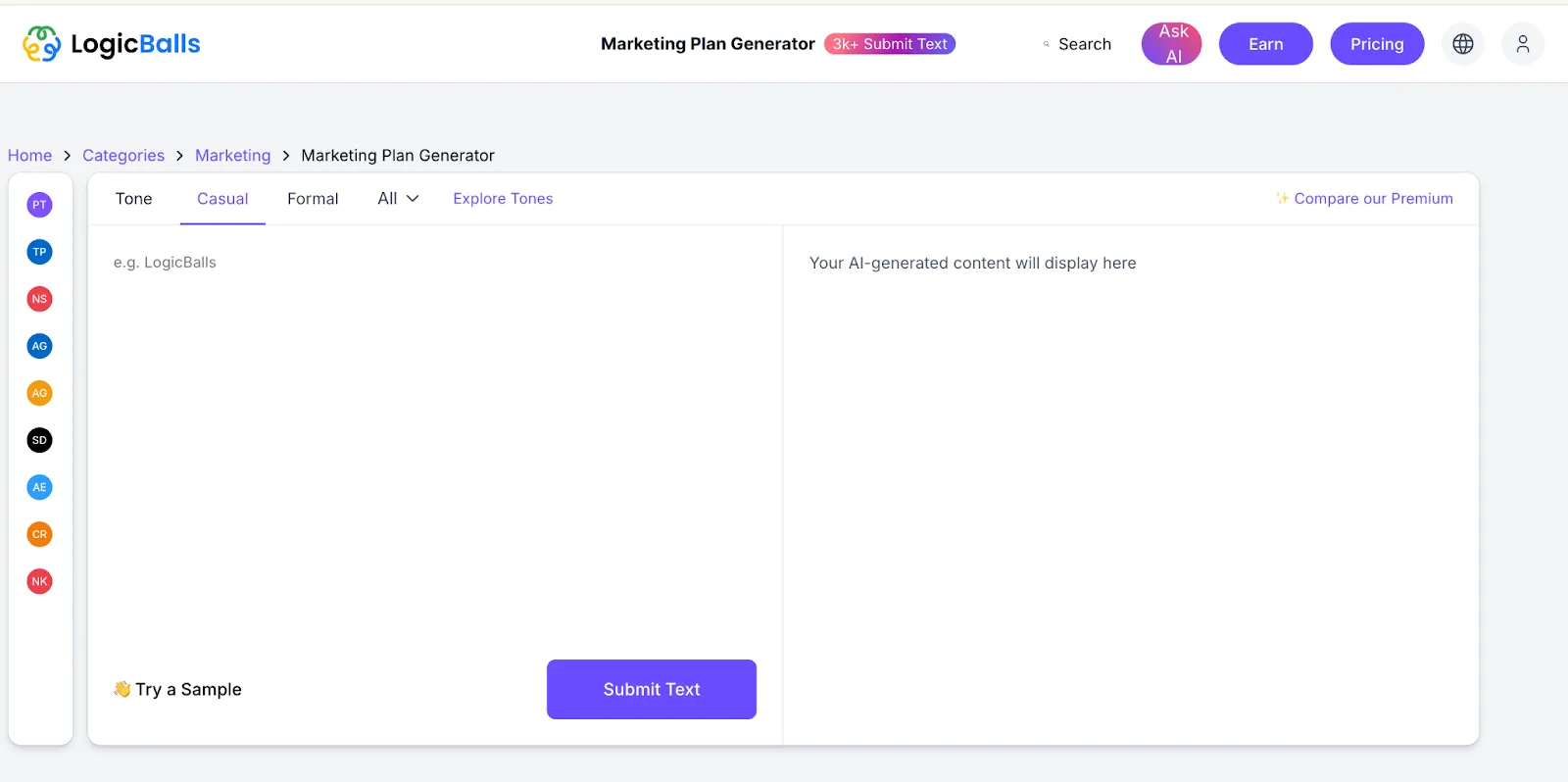 If you want to create a quick, structured marketing plan without overcomplicating the process, LogicBalls is a solid pick. It’s especially helpful if you’re handling content, campaigns, and brand messaging across multiple platforms.