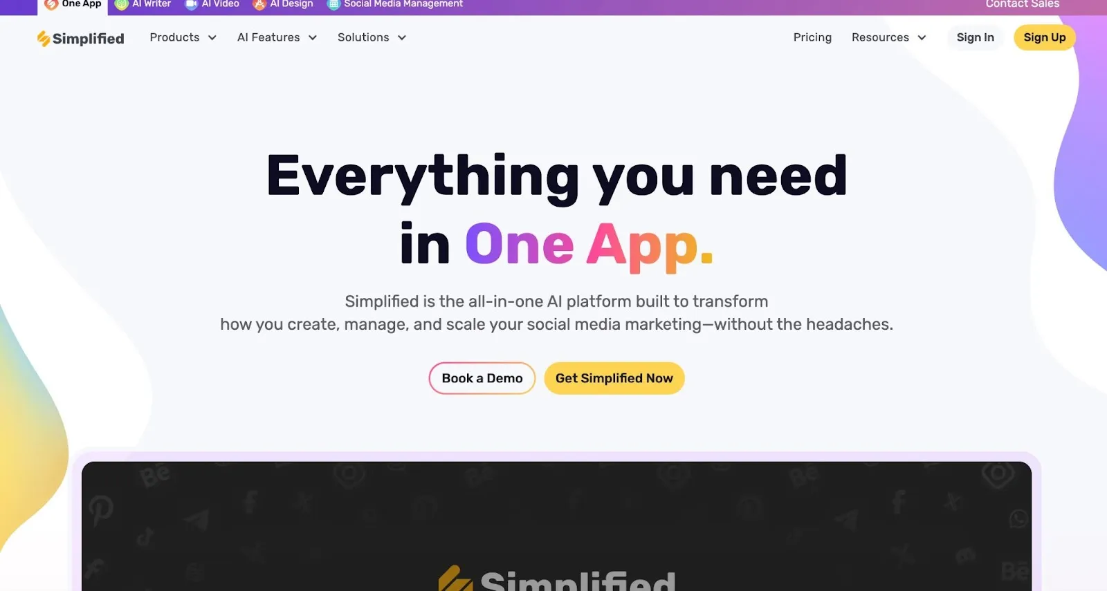 Simplified offers an all-in-one AI marketing suite (writing, design, video, social scheduling, and collaboration) that replaces multiple point tools and speeds content production.