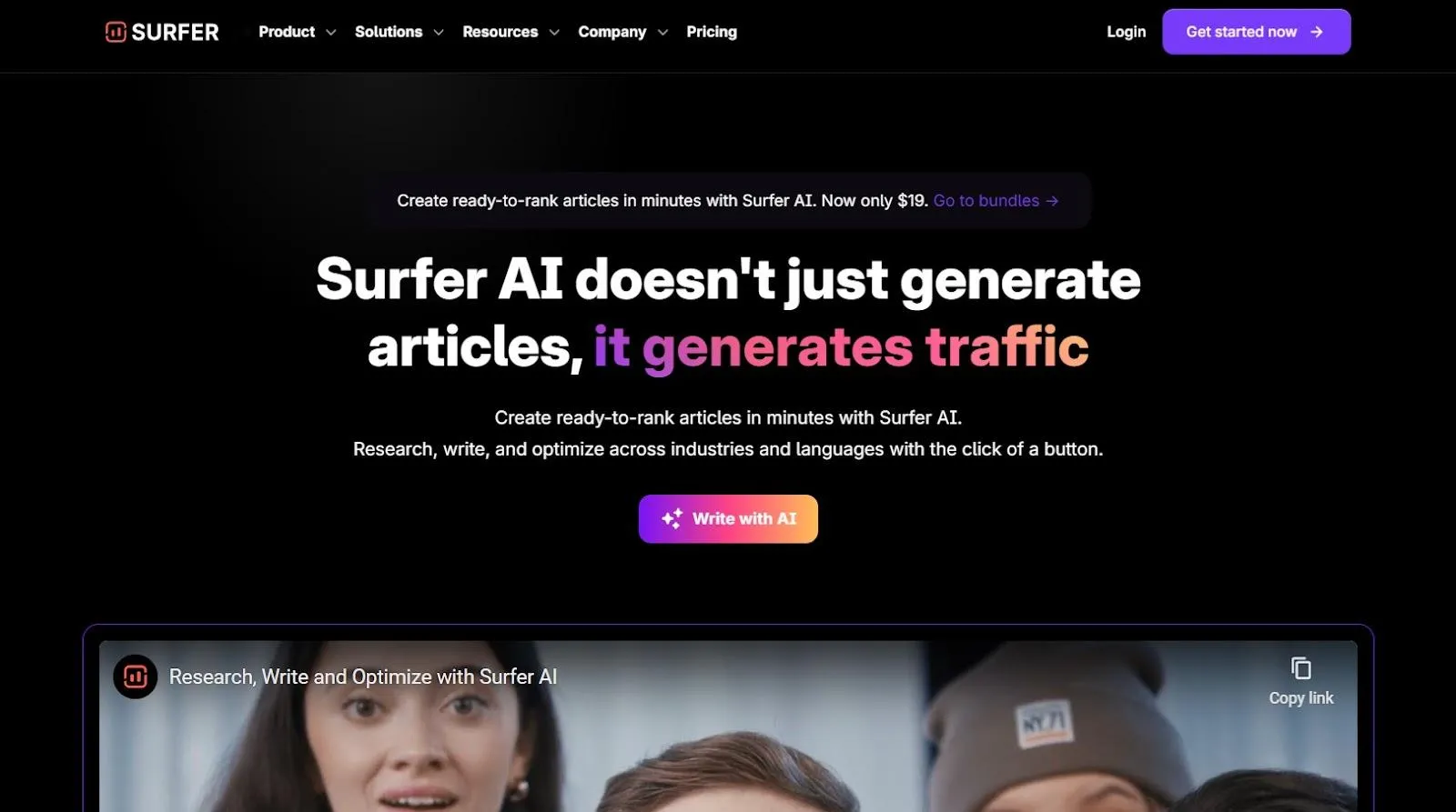 Surfer SEO lets you create SEO-optimized articles in minutes with its Surfer AI tool that are on-brand.