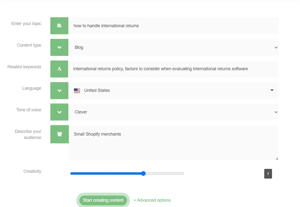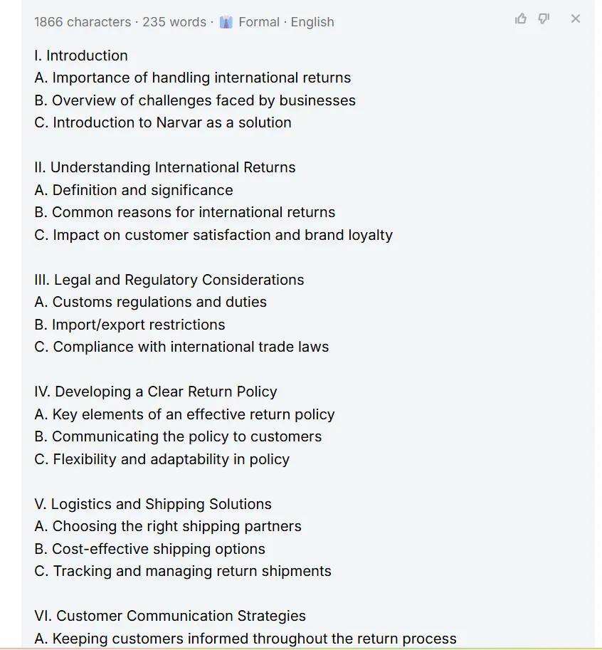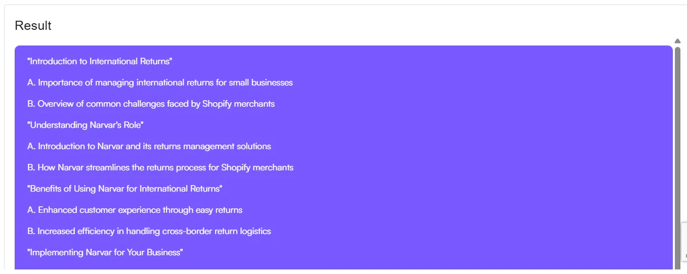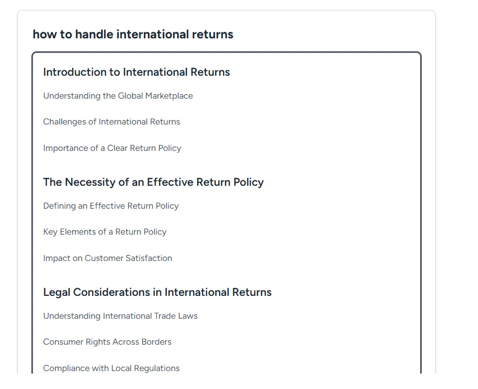 What I liked about Embarque’s generator is that it created an outline of a listicle of handling international returns, but I’d have liked to see my solution in there as well if there was a field for that.