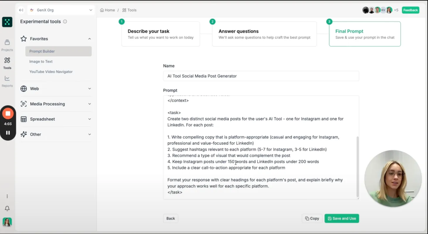 - You can select a tool, input your requirements, and get your prompt or content generated instantly; no learning curve or technical knowledge needed.