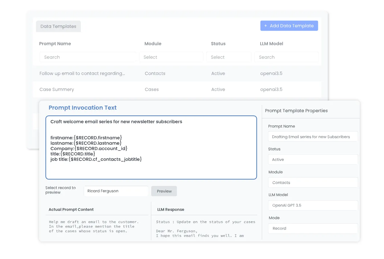 The key feature of Vtiger’s Prompt Builder lies in how you can create tailored prompts that match each team’s tasks: