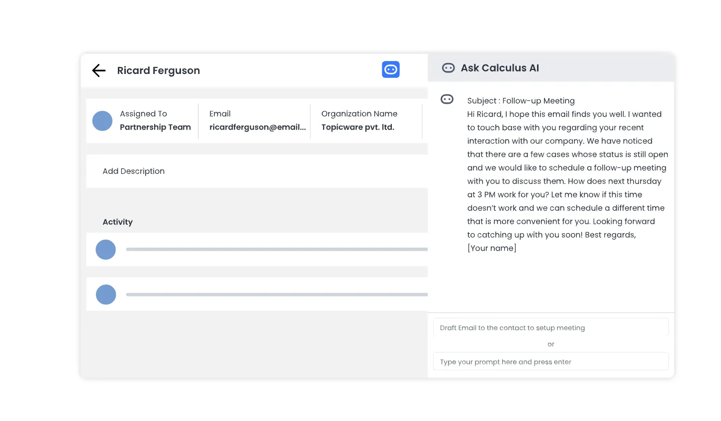 - You can build prompts that pull real-time data from your CRM, like contact info, previous interactions, open cases, and deals. This helps the AI respond with context, not guesses.