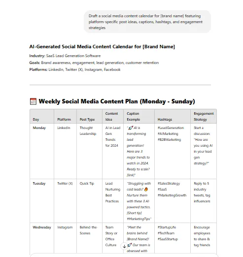 Customization: Adjust for Instagram, LinkedIn, TikTok, or industry-specific marketing needs.