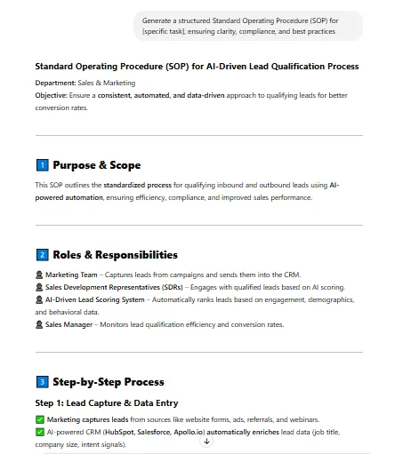 How it helps: AI creates detailed, standardized procedure guides, improving operational consistency.