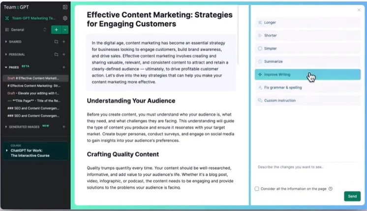 With Team-GPT, for example, your whole marketing team can work together on: