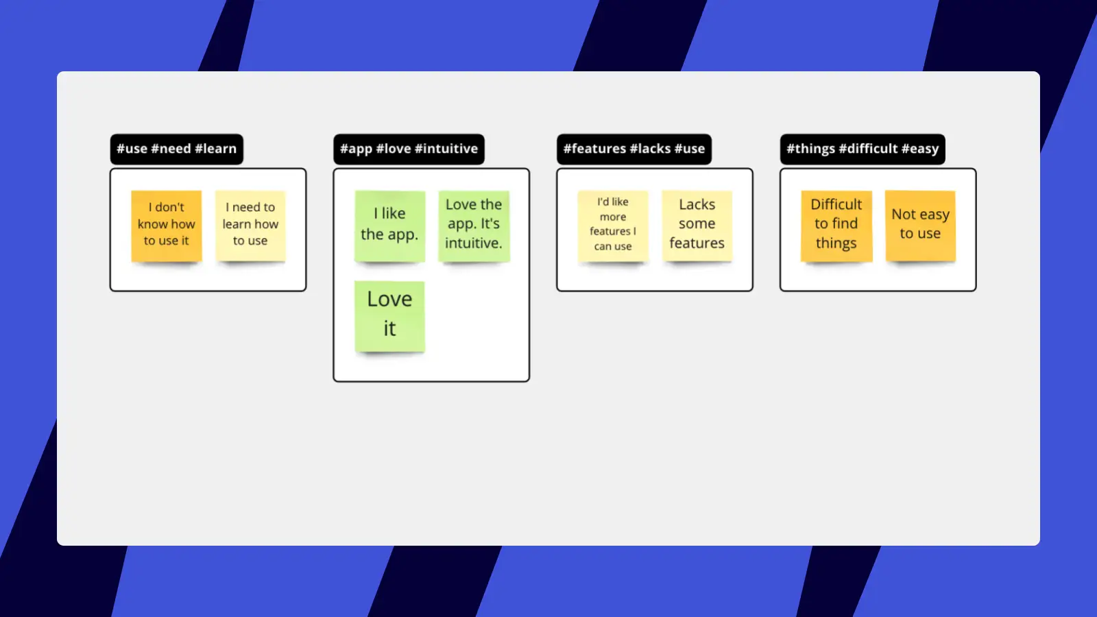- Group similar sticky notes