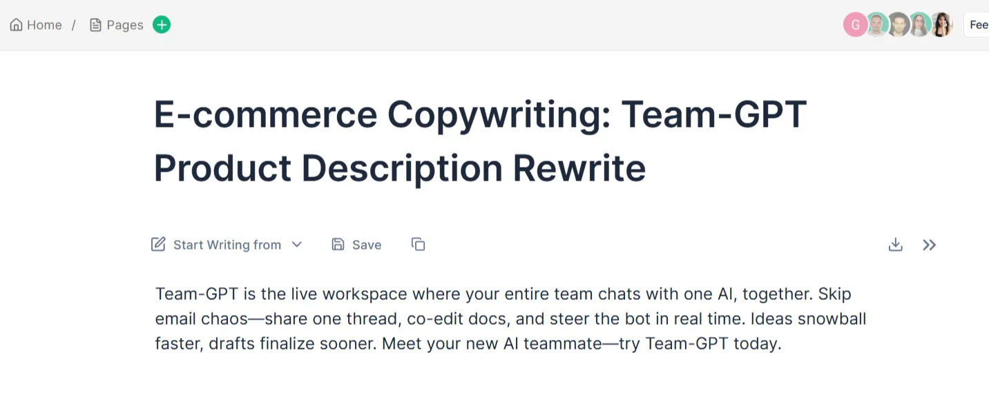 With Team-GPT, you’re not limited to basic rewording; you can shape the outcome and work with your team to ensure consistency and high-quality results every time.