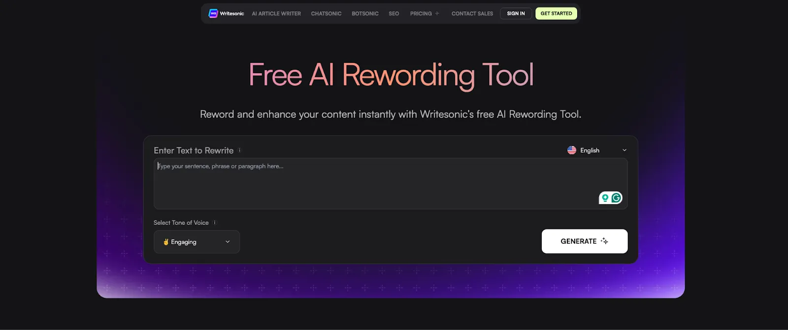 If you need a powerful AI rewording tool that helps you create dynamic, reader-friendly, and SEO-optimized content, Writesonic is a solid choice. It uses advanced AI algorithms and natural language processing (NLP) to help you quickly rephrase articles, essays, emails, and other content without altering the original meaning.