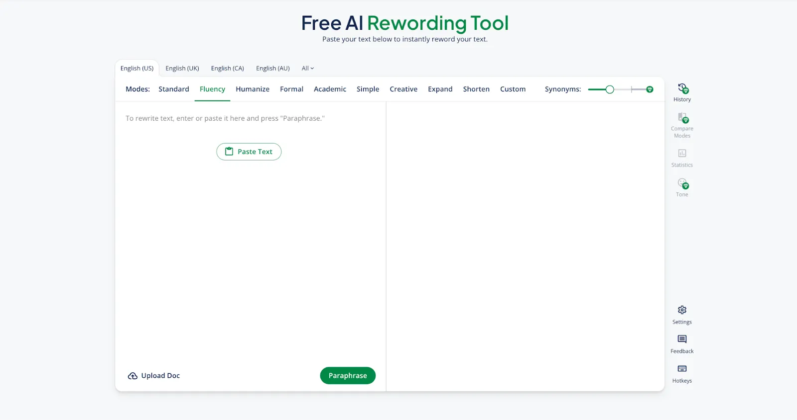 - Enter Your Text: I paste or type the text I want to reword into the input box.