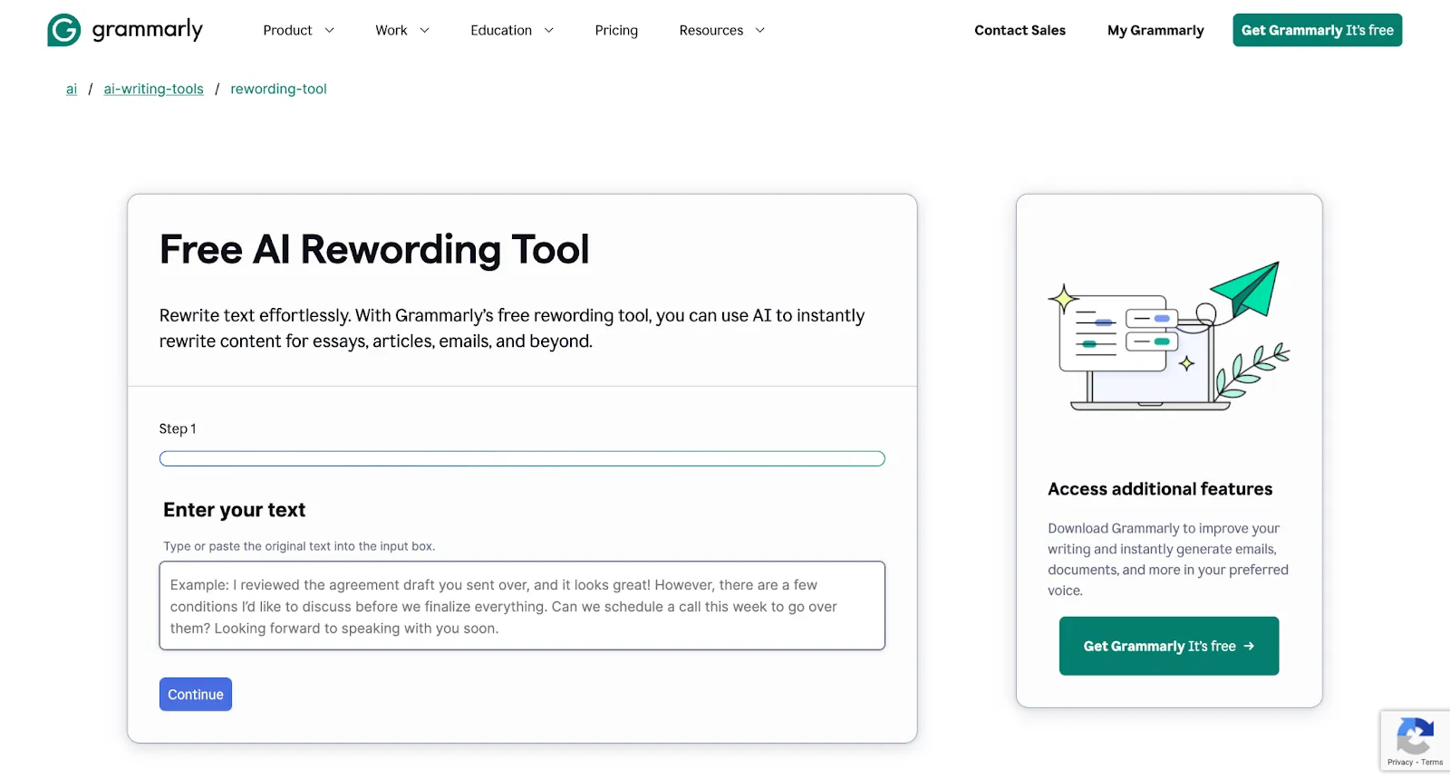 Grammarly’s AI rewording tool is a convenient, free solution for anyone who needs to rewrite content efficiently. Whether you’re working on essays, articles, emails, or social media posts, this tool allows you to quickly rephrase sentences and paragraphs, making sure your content stays fresh and easy to understand.