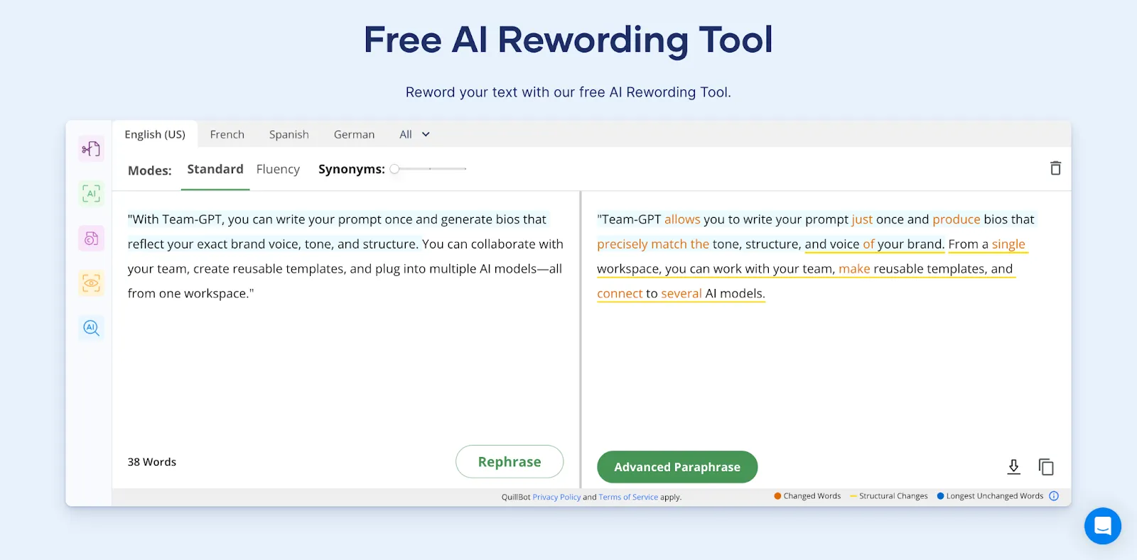 ✅ The ability to fine-tune reworded content makes it easy to adjust the final output to your preferred style.