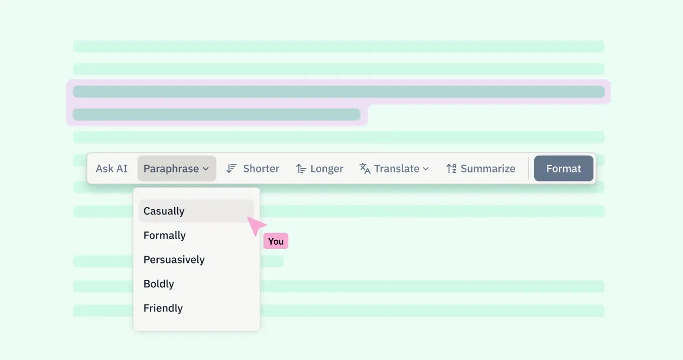 Everyone in your sales team can work in the same conversation at once. For example, while you’re drafting a pitch, your manager can edit it live, and your teammate can add product information.