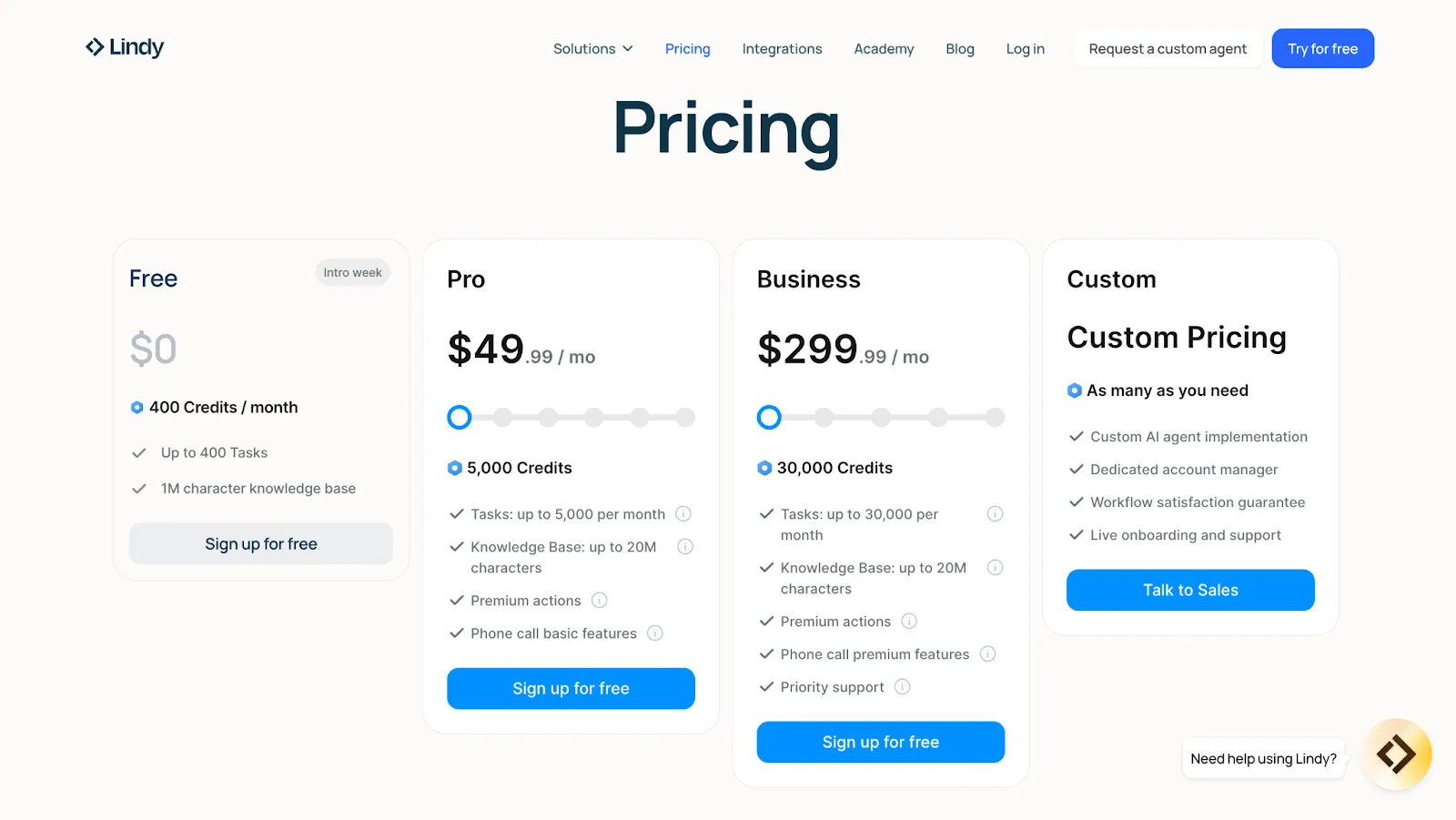 - Custom Plan: Custom pricing for larger teams with tailored needs. Offers unlimited tasks, custom agent setup, a dedicated account manager, workflow satisfaction guarantee, and live onboarding.