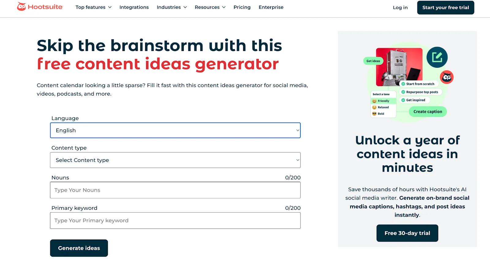 Claptools is one of the easiest AI TikTok content idea generators you can use when you need fast, no-fuss ideas. It’s completely free and doesn’t ask you to create an account.