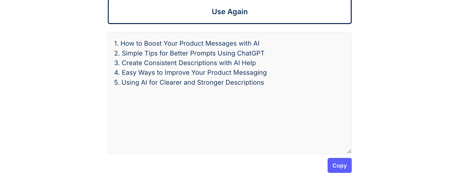 - Review the List: The model gives me 5–10 detailed ideas. If I want more, I can ask for variations or ask the tool to regenerate the results using a different tone.